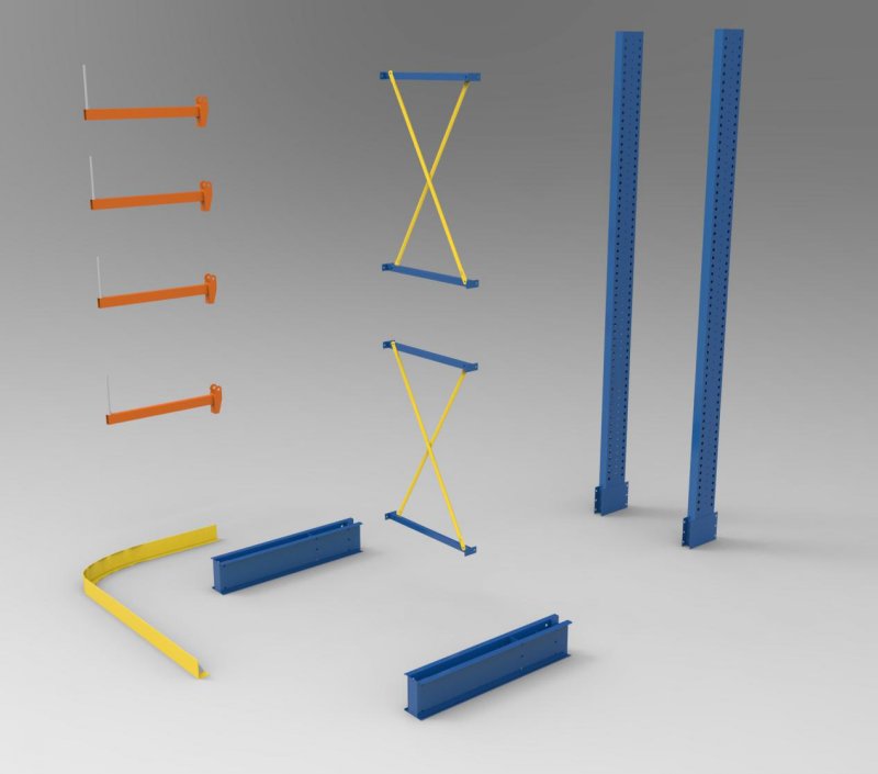 存放鋼制管件或者鋁制型材等,產品本身的長度一般為6m。輕型懸臂貨架和中型懸臂貨架是人工存放的貨架系統。通道尺寸1000-1500mm。高度一般為2m。在配套叉車使用后,高度可以做到5-12m。通道尺寸為2800-3000mm。需要使用專業叉車操作,這類貨架由于高度增加,和本身防止叉車作業風險的保護。會采用重型懸臂貨架要求設計。懸臂可以是單面或雙面,懸臂式貨架具有結構穩定,載重能力好、空間利用率高等特點。懸臂式貨架多用于機械制造行業和建材超市等。加了擱板后,特別適合空間小,高度低的庫房,管理方便,視野寬闊,利用率比普通貨架更高。懸臂式貨架是在傳統式貨架支柱上裝設外懸臂而成,是一種長形物專用的貨架。