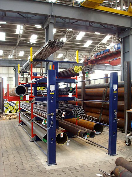 長物料存放架。 長物料,和多數的普通貨物不同。更多的貨物是使用國際標準范圍里的托盤來作為標準,比如1200*1200/1000*1000等等。長物料是木材,板材,管材等等較長的貨物種類。規格從3m-6m不等?赡苓有更長的貨物規格。那么就需要存儲的貨架,有很好的延伸效果,并且能夠滿足不同重量的承載需求。在不同的環境里,采用多樣的存取方式也決定長物料存儲系統的各種屬性。