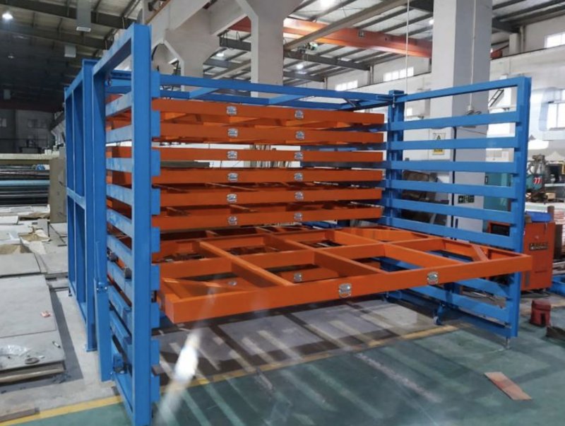 金屬板材存放貨架 板材堆放架工程項目 節。汗澥〈罅繌S房空間,抽屜式結構,可以15層存放,占地空間小,存儲量高。鋼板可以分層分類的存放在同一組貨架上,幾十種規格尺寸材質的鋼板存放在貨架上,瞬間廠房變得寬敞 整齊 明亮,抽屜式結構不需要叉車不需要工業巷道。天車存放節省人力,單人可以完成所有的操作,存取速度快,節省時間。 安全:鋼板存放在地面上占用的空間大,各種規格的鋼板都堆放在一起雜亂無章,容易磕磕絆絆,上面的鋼板還容易滑動,存在安全隱患,鋼板比較鋒利,人工存取還容易劃傷操作者,存在人員安全隱患。鋼板存放架還可以保護板材,防止鋼板在運輸中帶來損耗,特別是貴重金屬板材防止劃傷 刮傷 卷邊等情況的發生。 方便:鋼板存放架采用抽屜式結構,每層抽屜單獨拉出,方便鋼板的存取,特別是中間的鋼板也可以直接存放,不受上層或下層鋼板抽屜的影響,讓存取使用更方便。抽屜高標準拉出,操作方便。 快捷:鋼板存放架使用天車存放鋼板,存取速度快捷,鋼板直接存取,幾十種鋼板擺放在不同的抽屜里,貨物一名了然,不用浪費過多的時間,快速的存放所有使用的鋼板,不用反復整理挪動,讓廠房空間迅速寬敞起來。